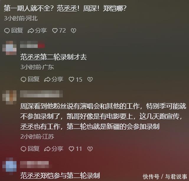 这打眼一看,观众们就发现了元老郑恺的缺席。 还有上一季表现比较突出的周深、范丞丞,都没参与录制。